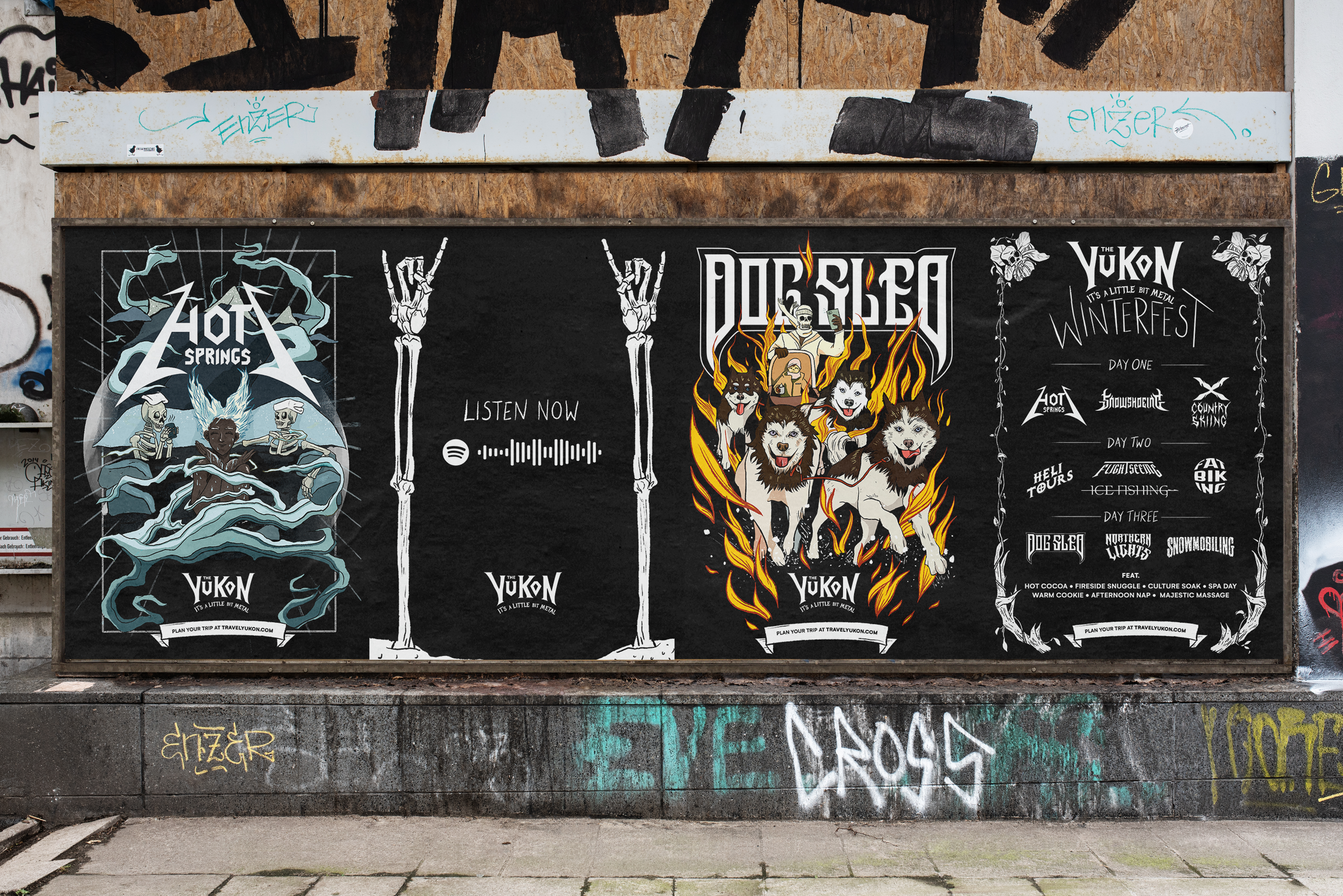 We recorded a full length metal track with lyrics that highlighted all the activities, and released it on Spotify and radio – we also shot a music video in the middle of a frozen lake. To top it off we recreated posters that mimicked metal band artwork, creating festival itineraries and temporary tattoos.